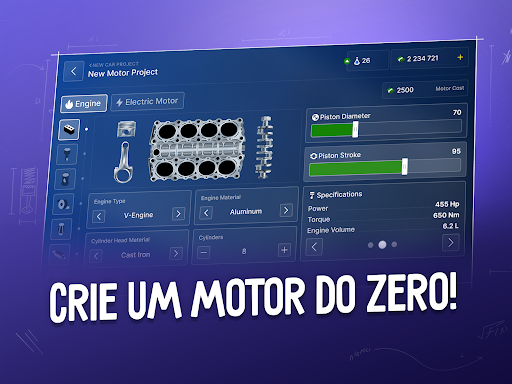 Projete e customize seus próprios modelos de carros, escolhendo desde o design até o desempenho, para conquistar os consumidores.